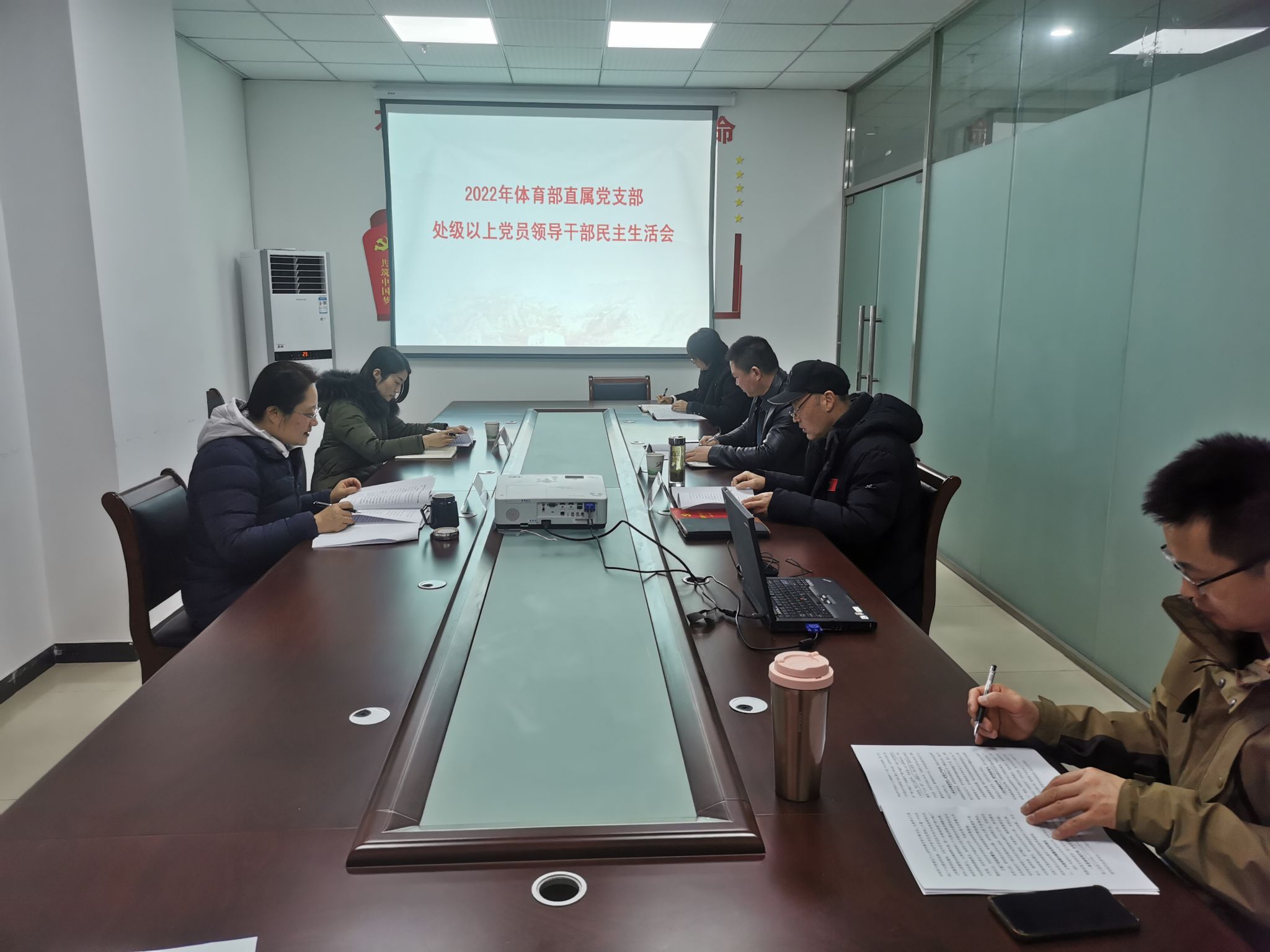 本网讯 2月2日,体育部直属党支部在党员活动室召开2022年度处级以上党员领导干部民主生活会。校党委常委、副校长李红,校团委副书记武晓蓓到会指导,体育部处级领导干部、支委委员参加会议。会议由体育部直属党支部书记李宏主持。