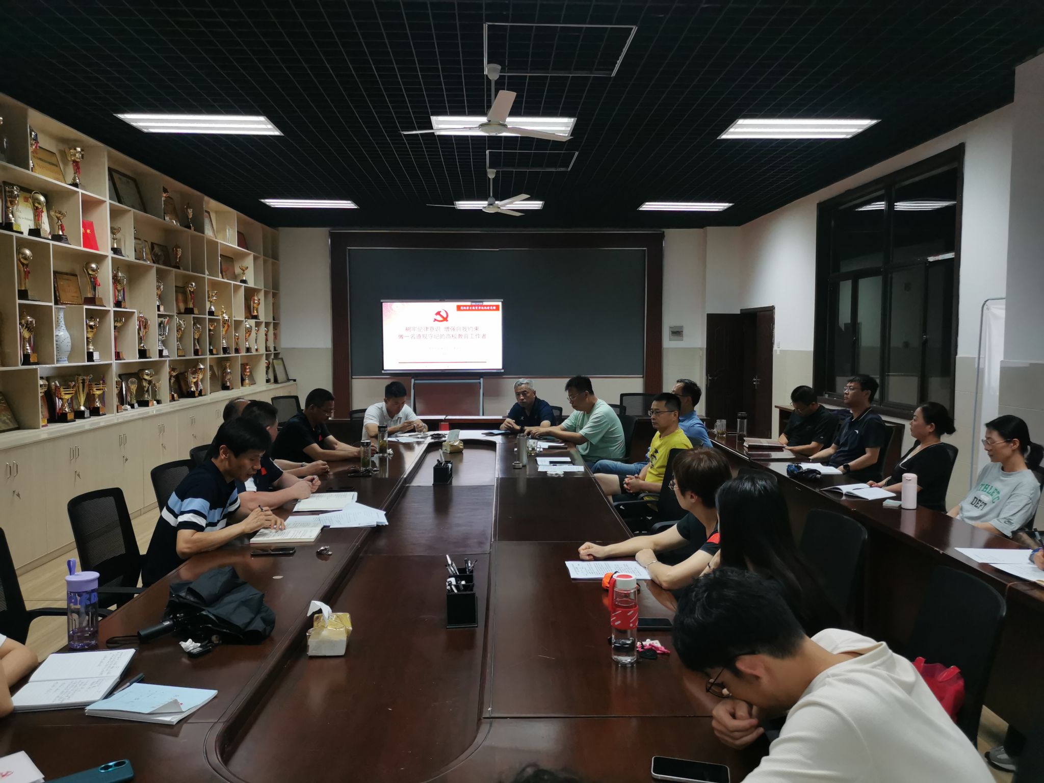 本网讯 为持续教育引导体育部党员教师学纪、知纪、明纪、守纪,根据党纪学习教育工作安排,6月19日下午,体育部直属党支部书记黄庆华以“树牢纪律意识 增强自我约束 做一名遵规守纪的高校教育工作者”为题,为支部全体党员上了一堂纪律党课。