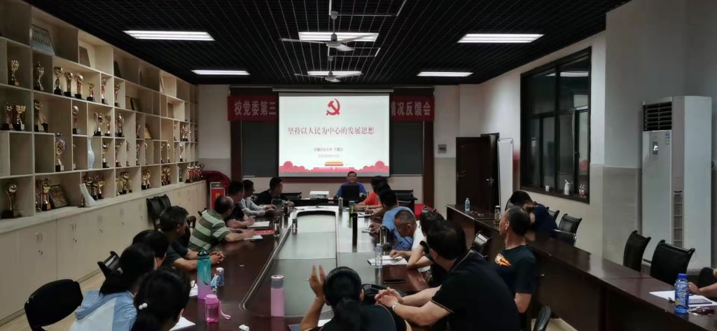 在会上,方章东从教师、学生、体育等多个视角,并结合体育部工作实际,用丰富详实的事例、生动精彩的语言,对习近平新时代以人民为中心的发展思想进行了深入的解读,激励体育部党员教师在践行以人民为中心的发展思想上走前列、作表率,不断提高全心全意为师生服务的水平和能力。