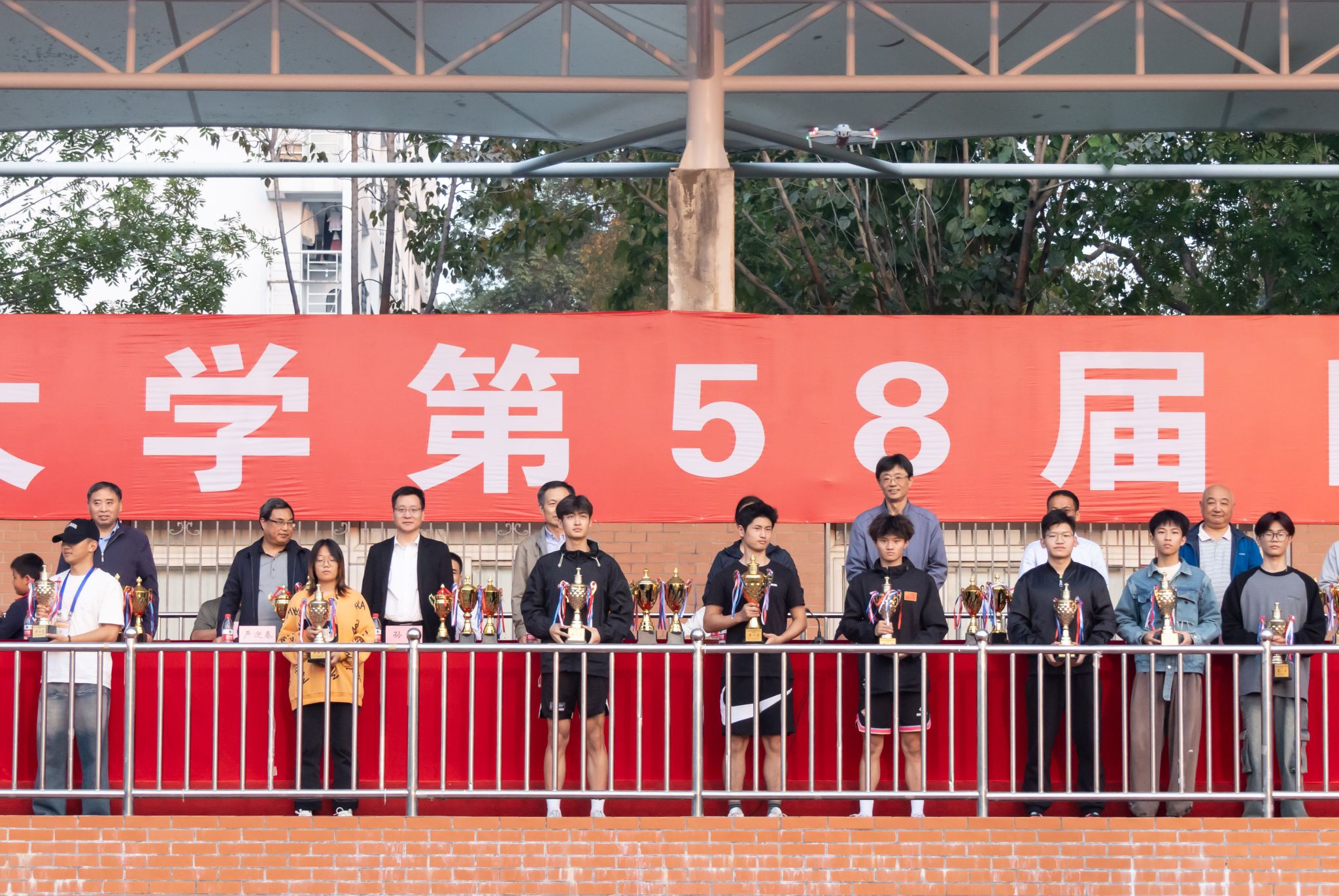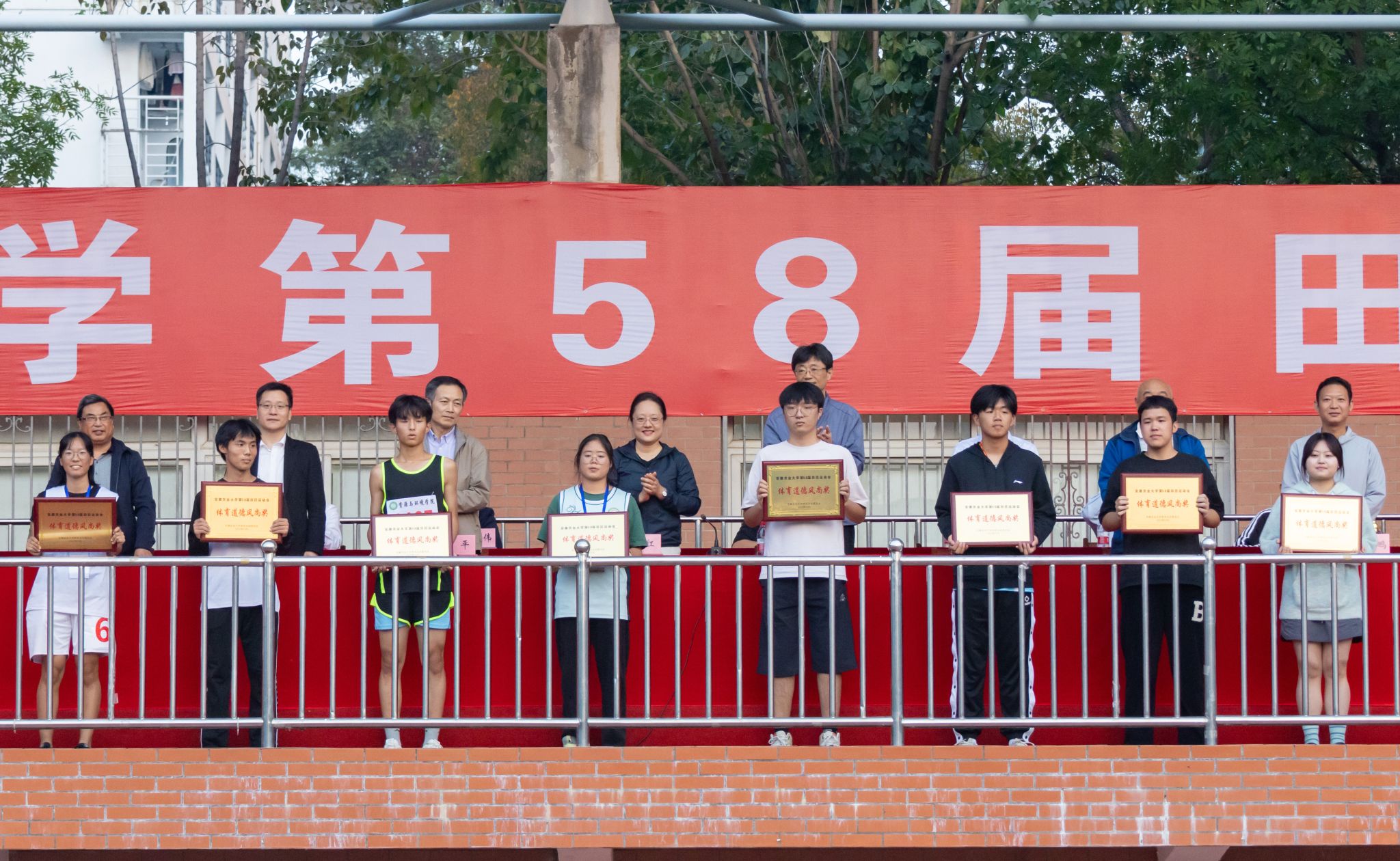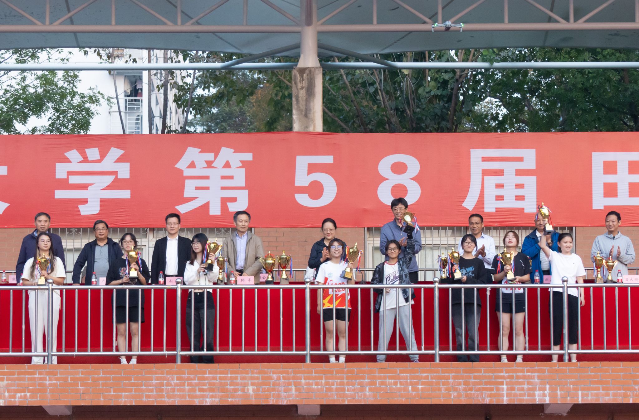 本网讯 10月28日下午,我校第58届田径运动会闭幕式举行。校领导李红、韩军,校体育运动委员会委员参加闭幕式。