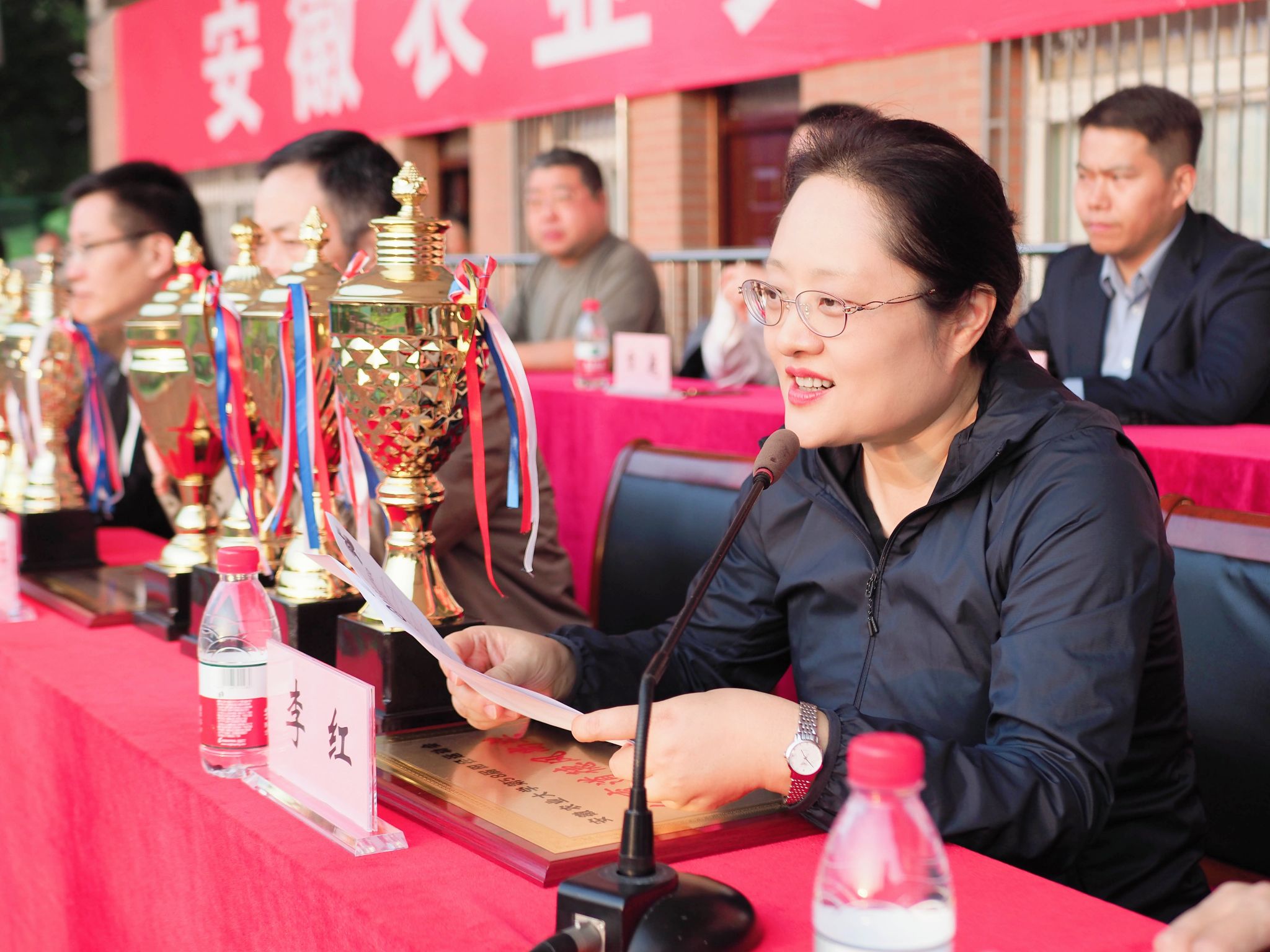 校党委常委、副校长李红宣布获得体育道德风尚奖的学院和运动员名单。
