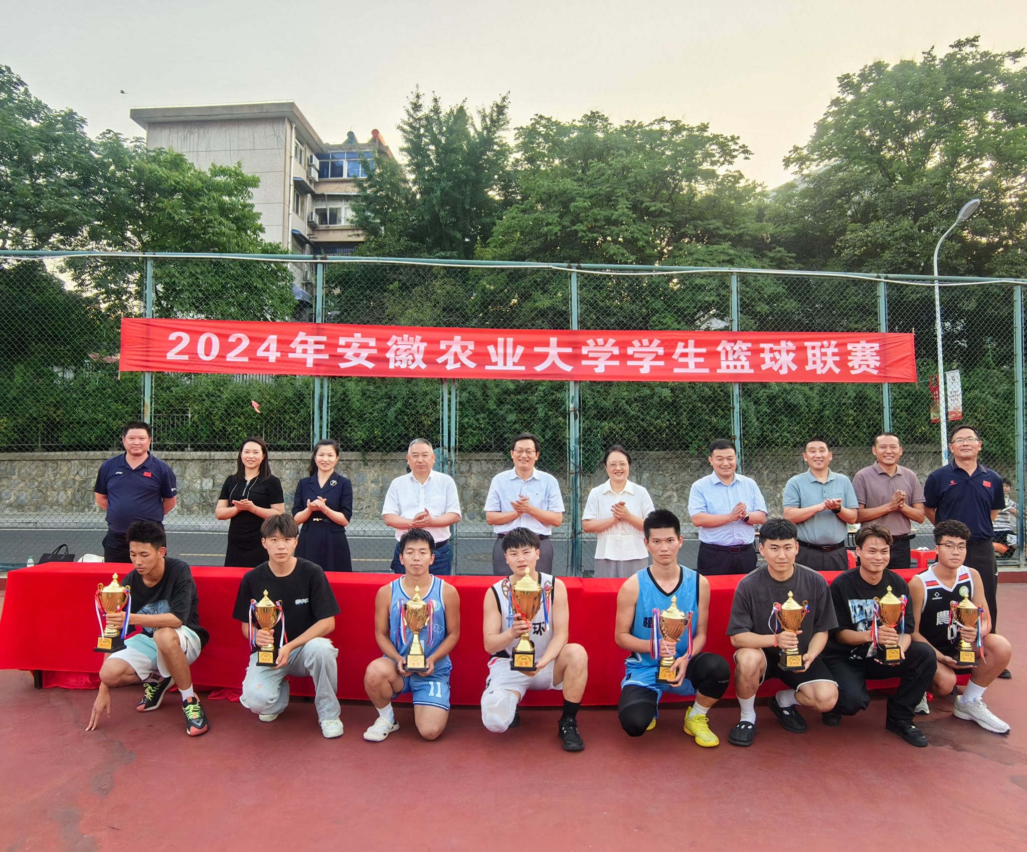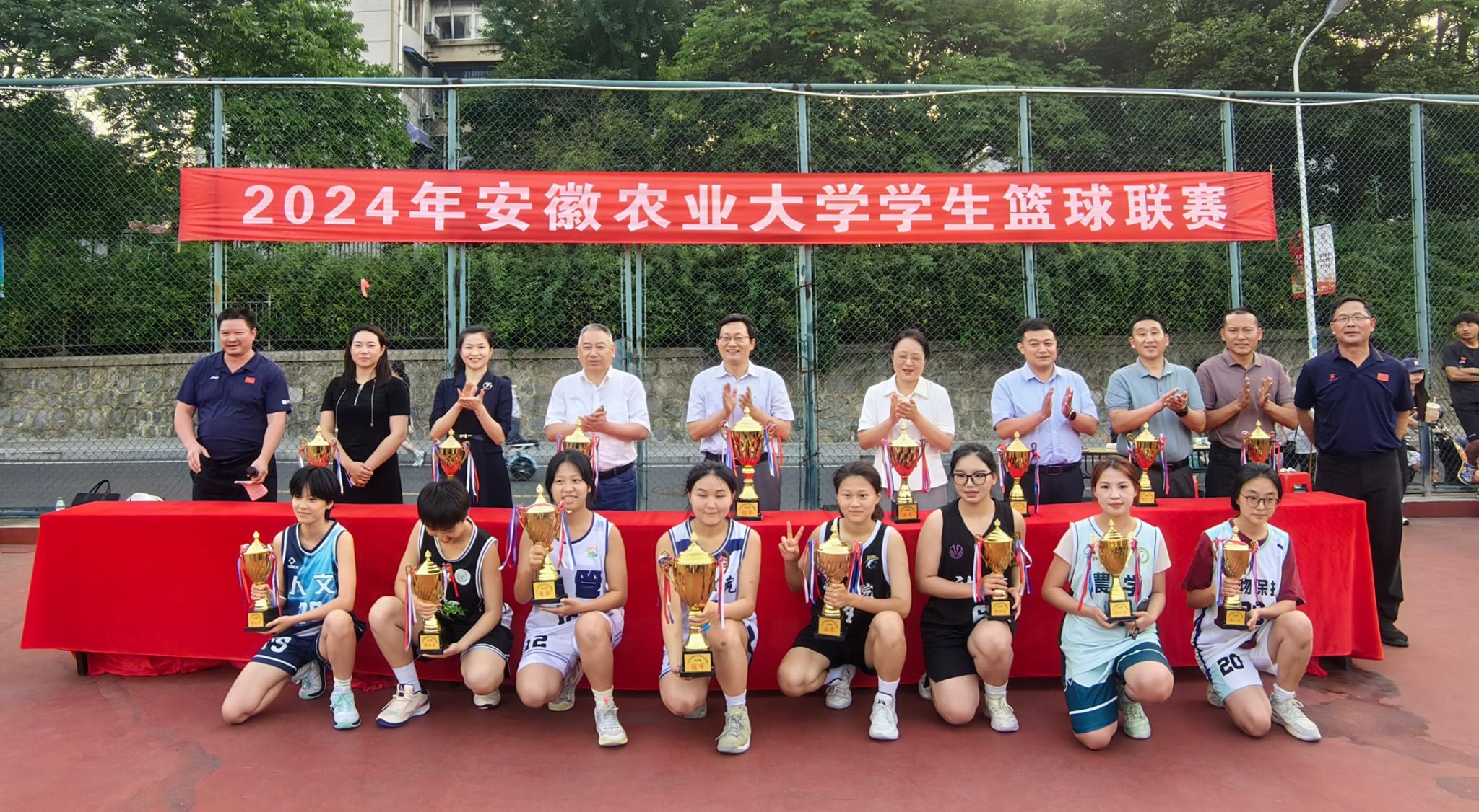 本次比赛共有来自全校15所学院、27支队伍参赛,经过7天60场比赛的激烈角逐,最终资源与环境学院凭借出色的团队协作和精湛的球技,荣获男子组冠军,植物保护学院、信息与人工智能学院分获男子组亚军和季军,工学院、动物科技学院、外国语学院、经济管理学院和农学院分别获得第四至第八名;在女子篮球比赛中,资源与环境学院获得冠军,材料与化学学院和经济管理学院分获女子组亚军和季军,动物科技学院、茶与食品科技学院、农学院、人文社会科学学院和植物保护学院分别获得第四至第八名。