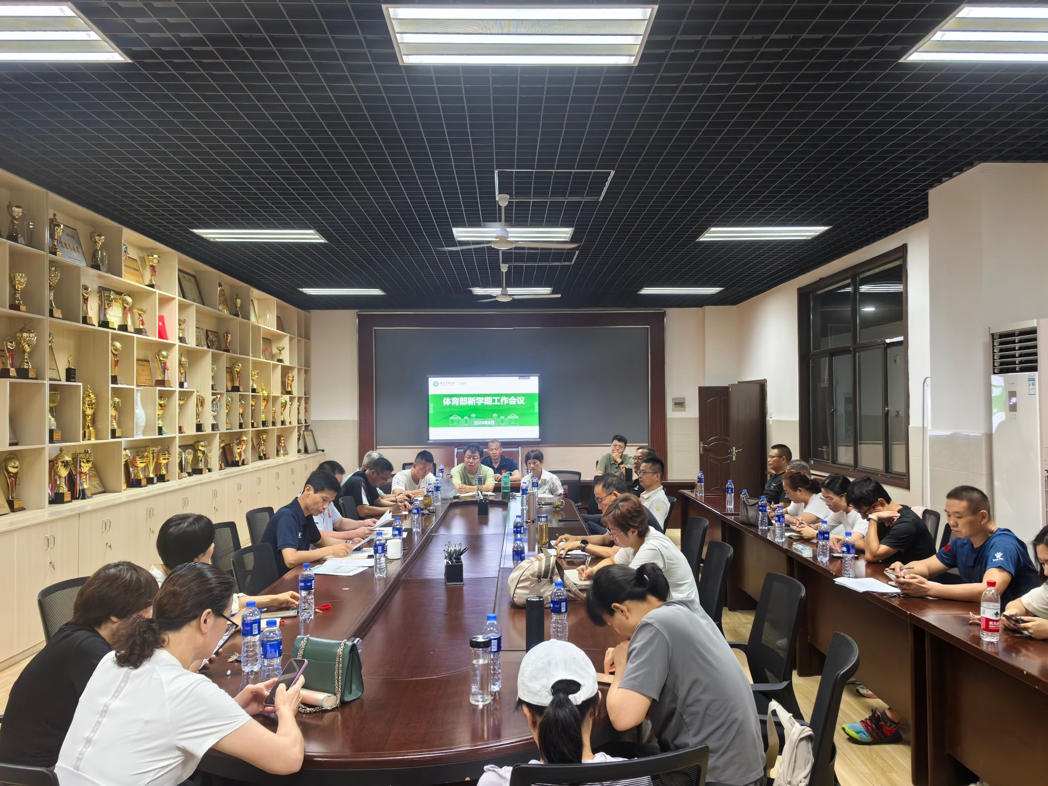 会上,集中学习了习近平总书记在党的二十届三中全会上的重要讲话精神和全会《决定》部分内容、习近平总书记在接见第三十三届奥运会中国体育代表团时的重要讲话、《中共中央 国务院关于弘扬教育家精神加强新时代高素质专业化教师队伍建设的意见》等内容;通报了暑假期间学校和体育部各项重点工作进展情况,并就开学第一课、审核评估、学生体测以及近期重点工作等进行了安排和部署。