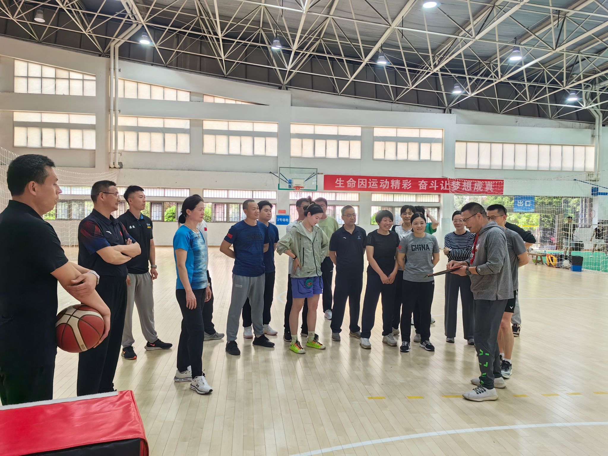 本次活动由张永龙老师主讲篮球技战术、张燕中老师主讲篮球裁判法,张永龙老师聚焦篮球战术中的突分与掩护两大核心内容。以“竞速运球上篮”分组游戏的情境化热身激发参与热情;分步骤演示突分与掩护配合技术要点;创新战术组合的分层演练实现“量变到质变”技能迁移的三阶段教学设计,使教师们在对抗情境中快速进入状态实现教研目标。课程总结环节,张永龙老师系统阐释了篮球教育的育人价值:突破需要果敢决断,对抗培养勇气担当,传球体现团队精神,战术凝聚智慧结晶,训练锻造坚持品格,礼仪传递尊重之道——篮球教育正是通过具身体验,在运动实践中塑造学生的品格。
