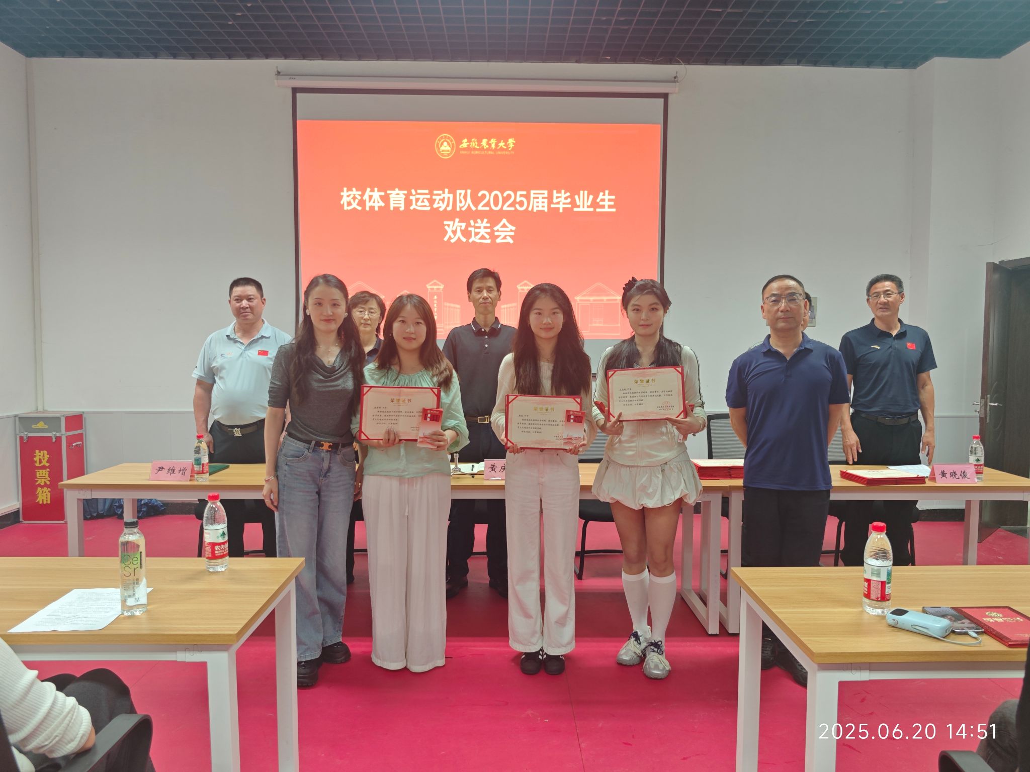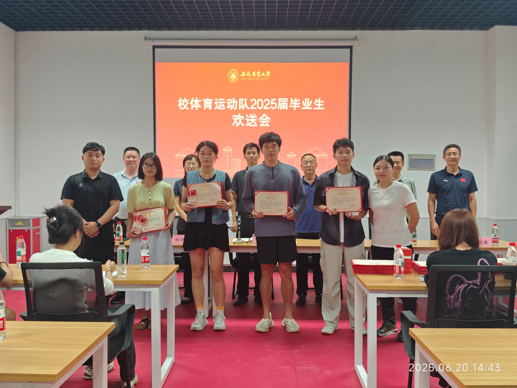 本网讯 6月20日下午,校体育运动队2025届毕业生欢送会在体育部会议室举行。校体育运动队全体教练员、毕业生参加欢送会,会议由体育部主任尹维增主持。