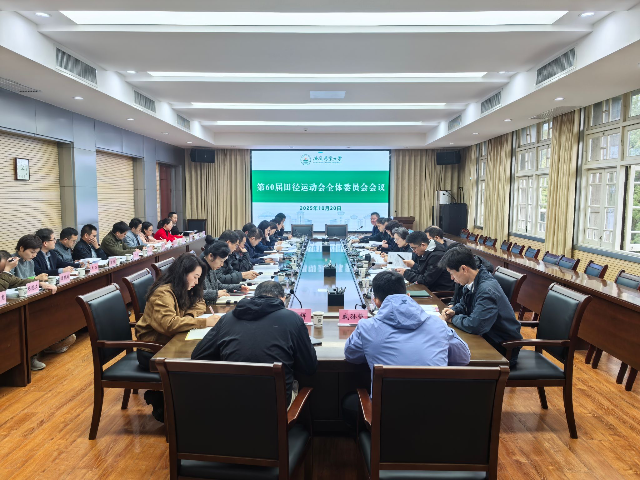 会上,体育部负责同志分别汇报了第60届田径运动会的前期筹备进展情况,通报了2024年度学生体质健康测试数据,对运动会部门分工进行了部署。校工会负责同志详细介绍了教职工参赛组织工作情况。运动会裁判长对本届运动会竞赛规则进行了细致、全面的解读。