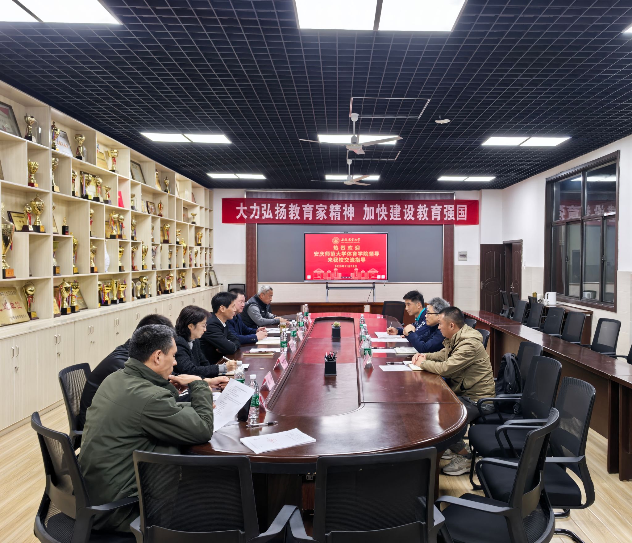 王晓东对我校的热情接待表示感谢,并简要介绍了安庆师范大学的发展概况及此次调研的目的;希望通过此次调研,能够学习借鉴我校在公共体育课教学、学生体测,以及校园体育文化建设方面的先进经验和做法,加强两校之间的交流与合作,共同促进体育教育事业的发展。
