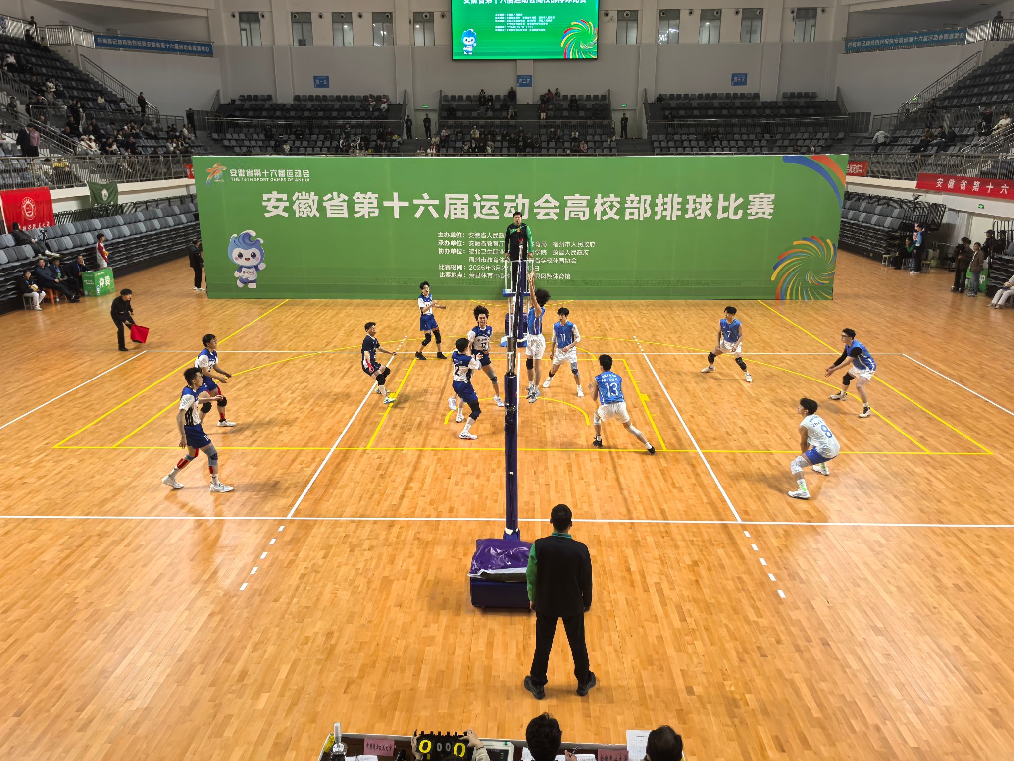 本网讯 4月3日,安徽省第十六届运动会高校部排球比赛在宿州市萧县体育中心圆满落幕。我校男子排球队以全胜战绩,斩获本届省运会高校部甲组首枚金牌。这是我校男子排球队继2014年第十三届、2018年第十四届、2022年第十五届省运会之后,连续第四次登顶省运会高校部男子甲组最高领奖台。