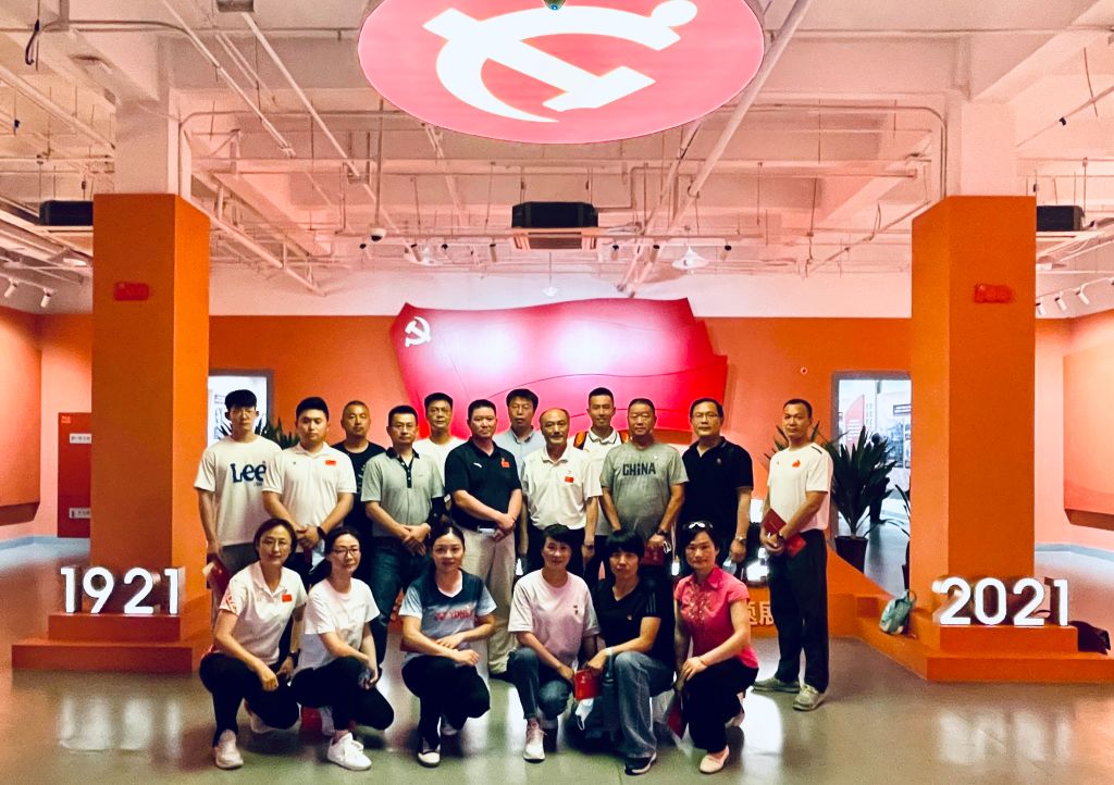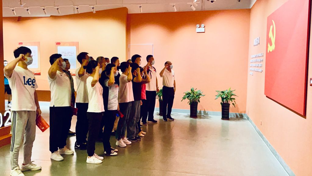 首先,全体党员在体育部直属党支部书记李宏同志带领下,面向党旗,重温入党誓词,体育部直属党支部两名新党员进行了入党宣誓仪式。随后,全体党员在博物院专业讲解员的带领下,参观了“初心映江淮”主题展。通过图文并茂的展示,讲解员的精彩介绍,全体党员了解一百年来,党团结带领安徽人民顽强奋斗,从土地革命时期创建皖西苏区到抗战时期新四军驰骋江淮,从新中国第一炉铜水揭开工业新篇章到小岗村“大包干”拉开农村改革大幕,安徽在中国革命、建设、改革的每一断面都留下了深深的印记。十八大以来,安徽省委、省政府以习近平新时代中国特色社会主义思想为指导,深入贯彻习近平总书记考察安徽重要讲话指示精神,团结带领全省人民,立足新发展阶段、贯彻新发展理念、构建新发展格局,全力打造具有重要影响力的“三地一区”经济社会取得历史性成就,美好安徽征程迈出坚实步伐。
