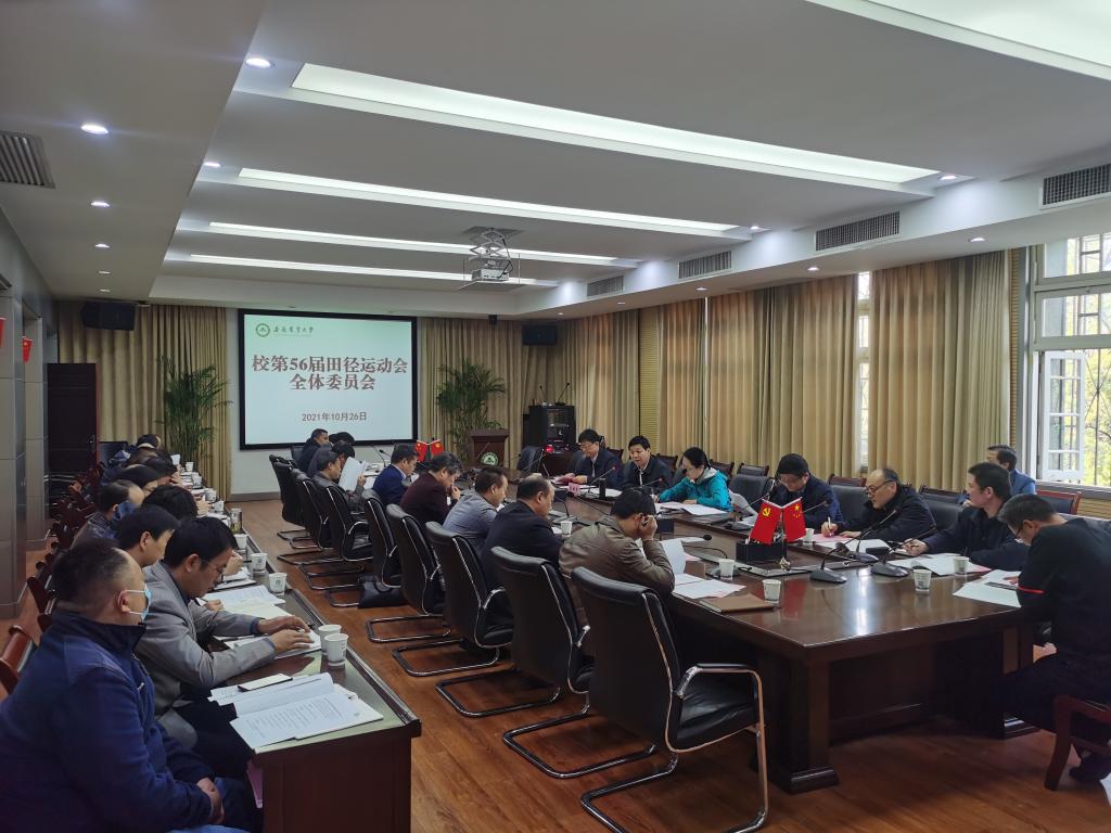 本网讯 10月26日上午,在校第三会议室召开了第56届校田径运动会全体委员会议,校党委副书记裴树东,校党委常委、副校长李红,校党委常委、副校长韩军及56届校运会全体委员出席会议,会议由副校长李红主持。