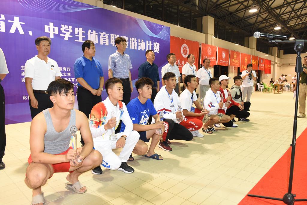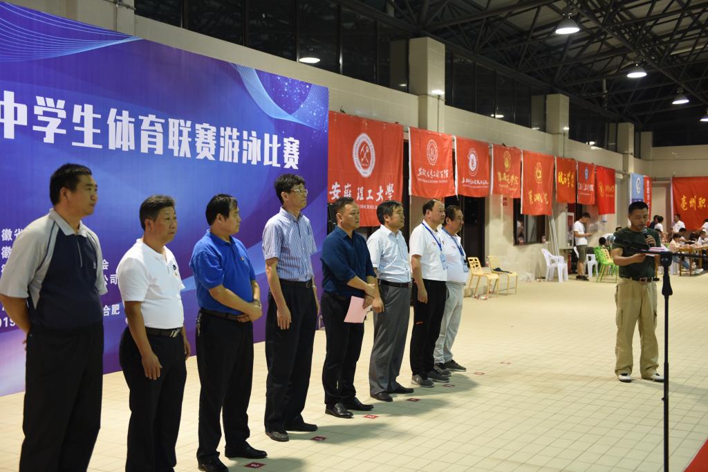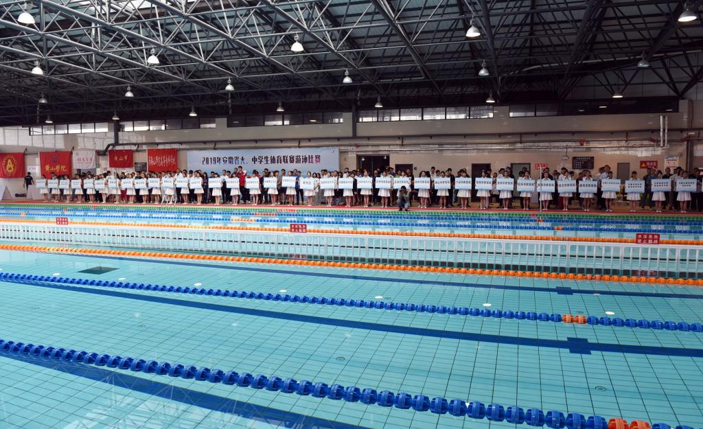 本网讯 9月29日下午, 2019年安徽省大、中学生体育联赛游泳比赛在我校游泳馆顺利闭幕。校党委常委、副校长韩军,省体育局田游中心青少部部长张健,本次比赛技术代表、国际级裁判李昌军教授、熊昌进教授出席闭幕式,校办主任、宣传部、总务处、保卫处等单位主要负责人,来自全省26所高校和11个市的大、中学生代表队,近400名运动员、教练员,全体裁判员、志愿者以及所有工作人员等参加闭幕式。闭幕式由体育部主任陈有忠教授主持。