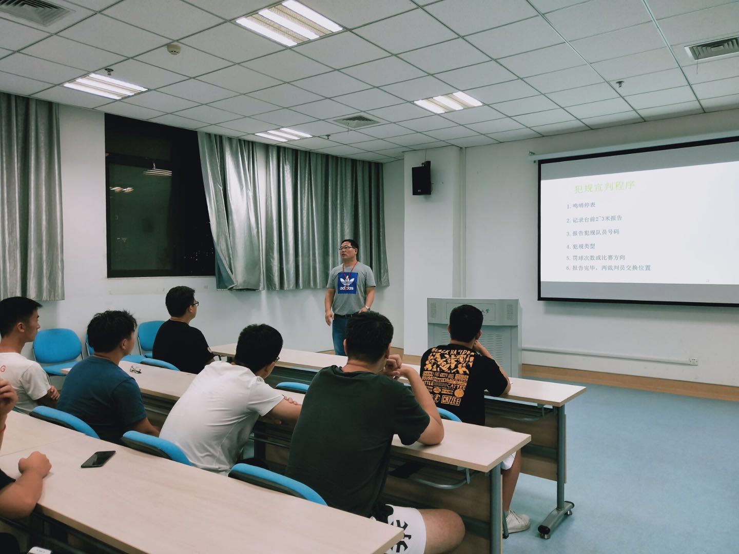 2019年6月20日晚上,安徽农业大学学生篮球裁判培训会在图书馆610教室准时开始,本次培训会由校体育部张燕中张老师、学生篮球协会同学和教职工篮球协会部分老师参加。