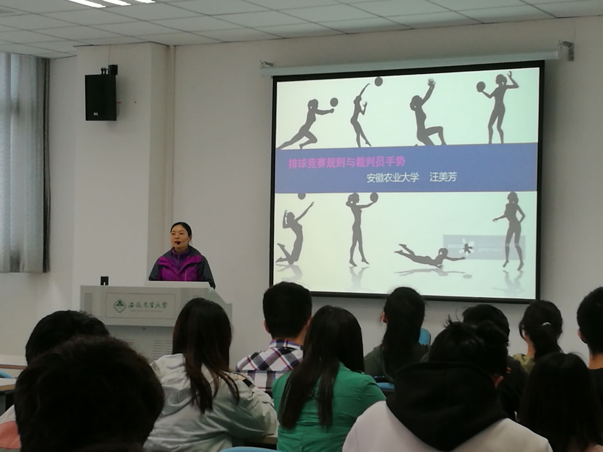 2019年4月29日中午,排球裁判员培训班在校图书馆610教师开展,全校报名培训的90多位学生按时满勤参加培训,排球国家一级裁判员汪美芳老师带领全体学员学习了国际排联通过的2017-2020最新排球竞赛规则,并结合案例为学员们讲解执裁中容易出现的问题及解决方法。