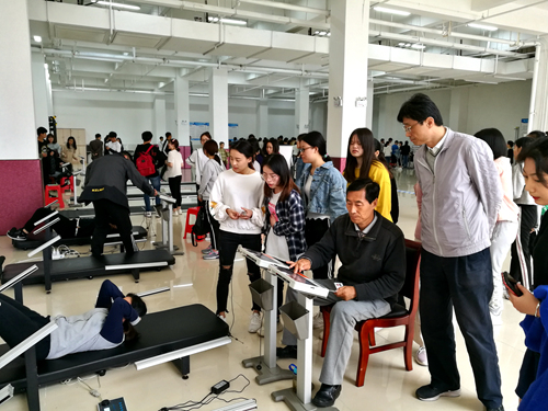 本网讯 按照教育部、省教育厅要求,我校2019年学生体质健康测试工作正在如火如荼地进行中。4月27日上午,副校长韩军前往我校田径场和室内体测室检查学生体测情况,教务处领导、当天参加测试学院副书记陪同检查。