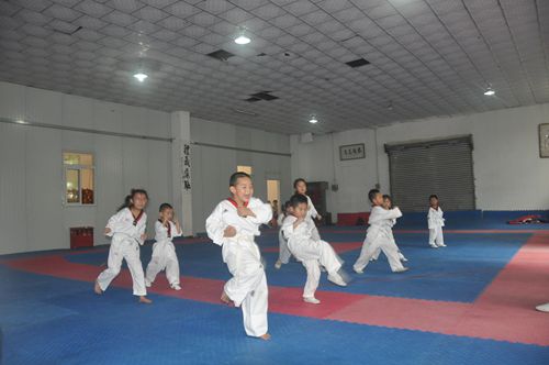在张玉强老师的带领下,小学员们学习了跆拳道的正踢腿、里合腿、外摆腿、前踢、下格挡接正拳击、中内格挡接正拳击、上格挡接正拳击等基本动作与组合,并且不仅学会了基本的跆拳道礼仪,而且发扬了百折不屈的跆拳道精神,在高温天气下坚持锻炼。