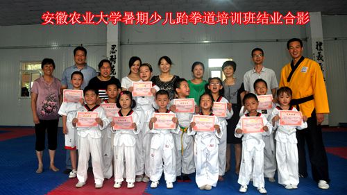 8月8日上午,安徽农业大学暑期义务培训班少儿跆拳道班圆满结束,历经5周的时间,学员们完成了全部培训内容顺利结业,体育部为学员们准备了一次非常有意义的结业仪式,孩子度过了非常开心的一节课。