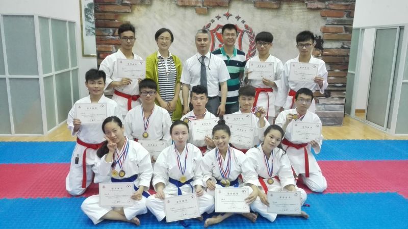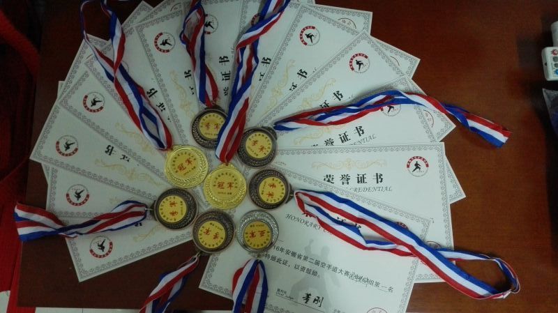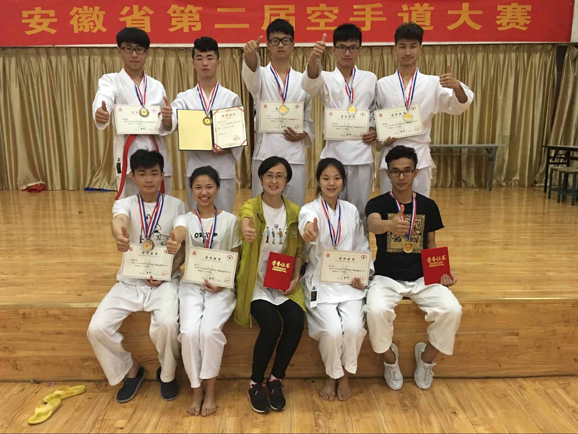 2016年安徽省第二届空手道大赛在6月10日上午圆满结束。有来自安徽农业大学,安徽建筑大学,安徽理工大学,合肥工业大学,天津北龙道馆,合肥风云武道馆等12支代表队,近200名选手参加比赛。我校派出了12名队员参加比赛,虽然大部分队员都是第一次参赛,但也表现出了顽强拼搏的体育精神,他们放弃了端午假期,经过两天的激烈决逐,我校队员以1金2银8铜6个第五的成绩完成了比赛,第一次踏足赛场的他们,第一次感受到挫败、第一次在挫败中奋发、第一次挂上金灿灿的奖牌感受胜利的喜悦,第一次用自己努力拼搏的汗水和泪水换来属于自己的荣誉、属于农大的荣誉,队员们继续加油!让你们的笑容更灿烂,农大为你们骄傲。