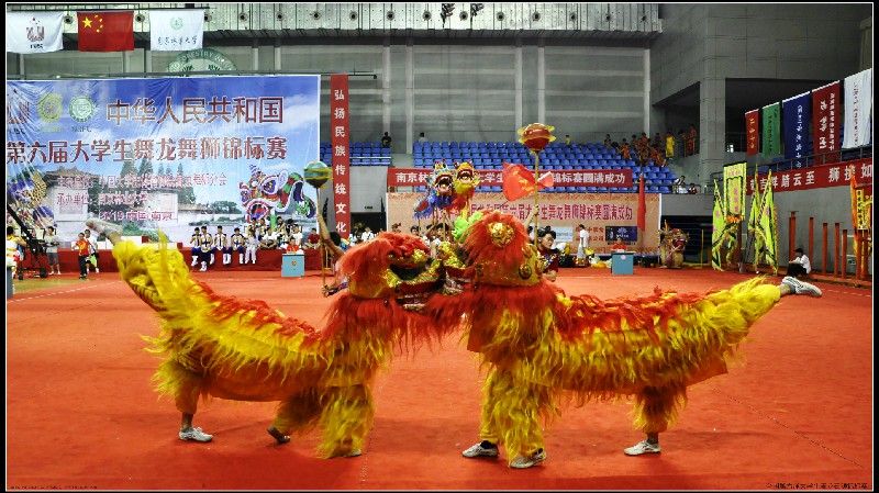日,中国大学生第六届舞龙舞狮锦标赛在南京林业大学体育馆隆重举行。我校龙狮队经过五天的激烈角逐,最终夺得教学双龙项目第二名,传统项目龙狮同台优胜奖的骄人战绩,为我校龙狮的发展迈上了一个新的台阶。同时,我校龙狮队还获得“最佳服饰奖”,范深、徐龙凤两位同学获得“优秀运动员”荣誉称号。本次比赛我校龙狮队获得了运动成绩和精神文明双丰收!