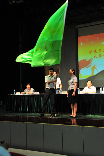受华东区高等农业院校体育理事会委托,我校将承办2015年华东区高等农业院校第十四届大学生田径运动会,校党委常委裴树东代表学校在会上致欢迎词并接过华东区高等农业院校体育理事会会旗。