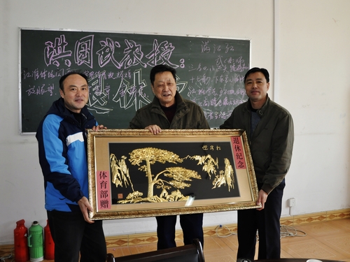 欢送会上,裴树东书记对洪国武教授的工作成绩给予充分肯定,对他为学校和体育部发展所做的贡献表示衷心的感谢。并希望他退休后能够继续关注体育部的发展,为学校体育事业的发展献计献策,发挥余热。