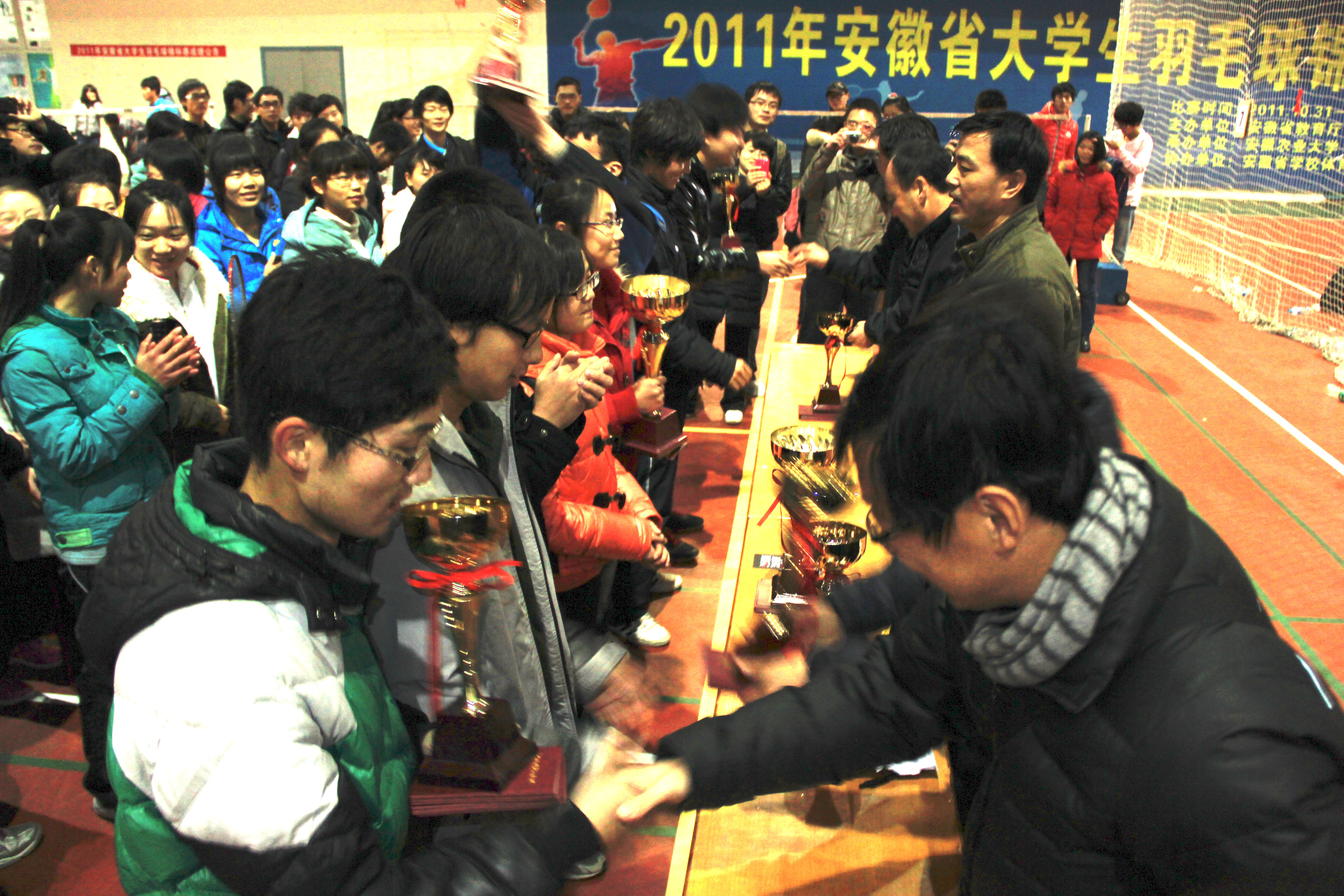 体育部网站11月初就开始了校羽毛球团体赛的通知公告,全校各个学院积极组队训练,17个院系报名参加了比赛。12月10日——12月14日是赛事第一阶段:小组循环赛。每组循环赛打满五场,胜三场者为胜,但为了促进各个学院队员之间的交流与对抗,提高羽毛球队员的比赛心理水平,组委会要求所有参赛学院必须打满“女子单打、男子单打、女子双打、男女混合双打、男子双打”五场比赛,小组前两名出线进入第二轮的交叉淘汰赛,A组的第一名对阵C组的第二名,A组的第二名对阵C组的第一名……经过激烈的角逐,动物科技学院获得团体冠军,经济技术学院、经济管理学院分获二、三名,研究生学院、工学院、资源与环境学院、理学院、生命科学学院分别获得四到八名。