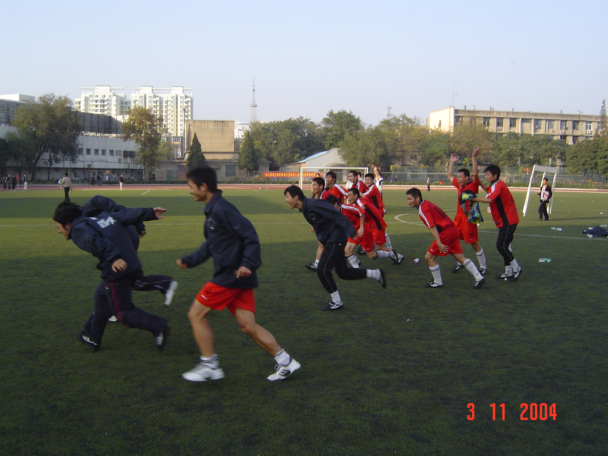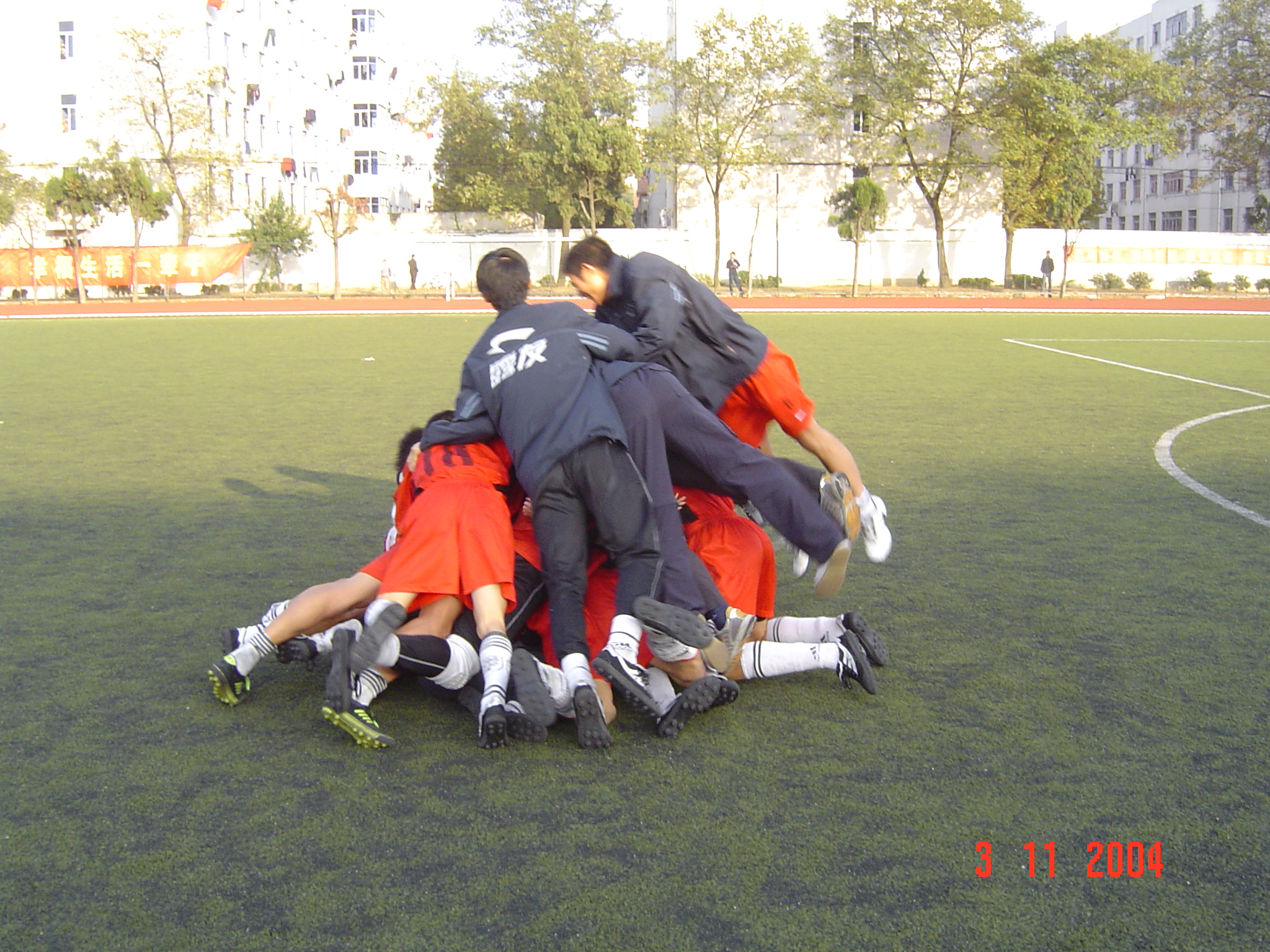 我校大学生足球队首先以小组第一名的身份突出重围,在以后的比赛中,又以1:0战胜合肥工业大学队,3:2战胜解放军电子工业学院队并杀入决赛。