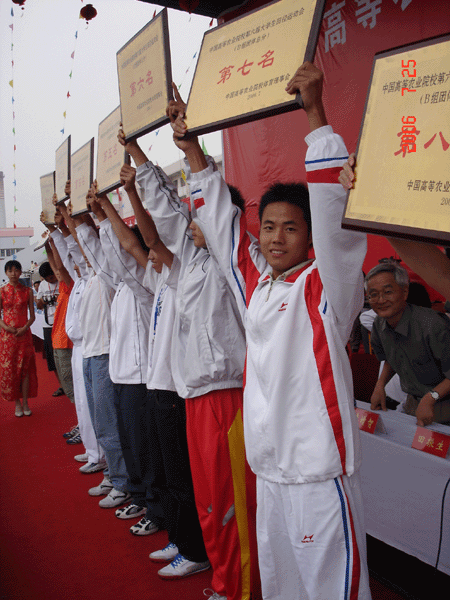 支队伍进入了晚上的决赛。经过激烈的角逐,最终,管理科学学院获得一等奖,轻纺与艺术学院和外国语学院获得二等奖,理学院、林学与园林学院、植物保护学院、资源与环境学院和动物科学学院获得三等奖,同时,轻纺与艺术学院和外国语学院分别获得最佳编排奖和最佳表现奖。人文社会科学学院、信息与计算机学院、农学院和经济技术学院获得体育道德风尚奖。