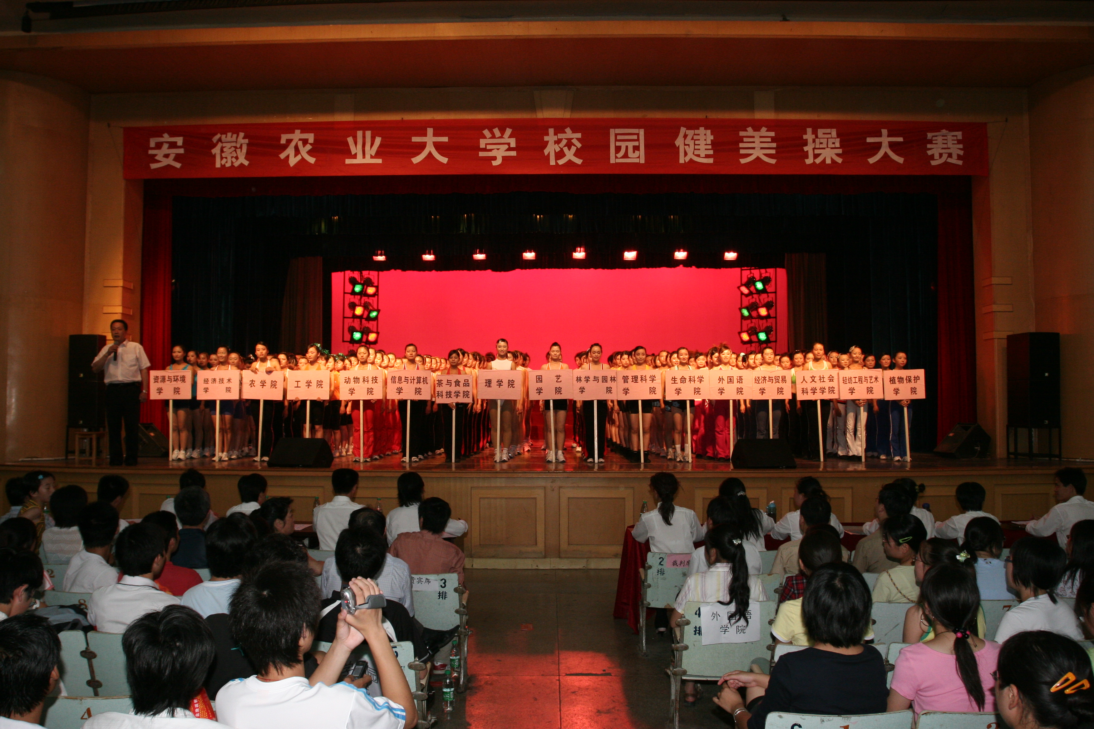 下午,安徽农业大学第三届校园健美操大赛在校大礼堂隆重举行,学工处、教务处、校团委和各学院领导出席了开幕式。