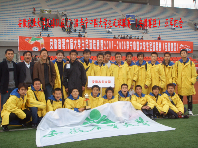 安徽农业大学男子足球队获07年安徽省大学生足球比赛亚军
