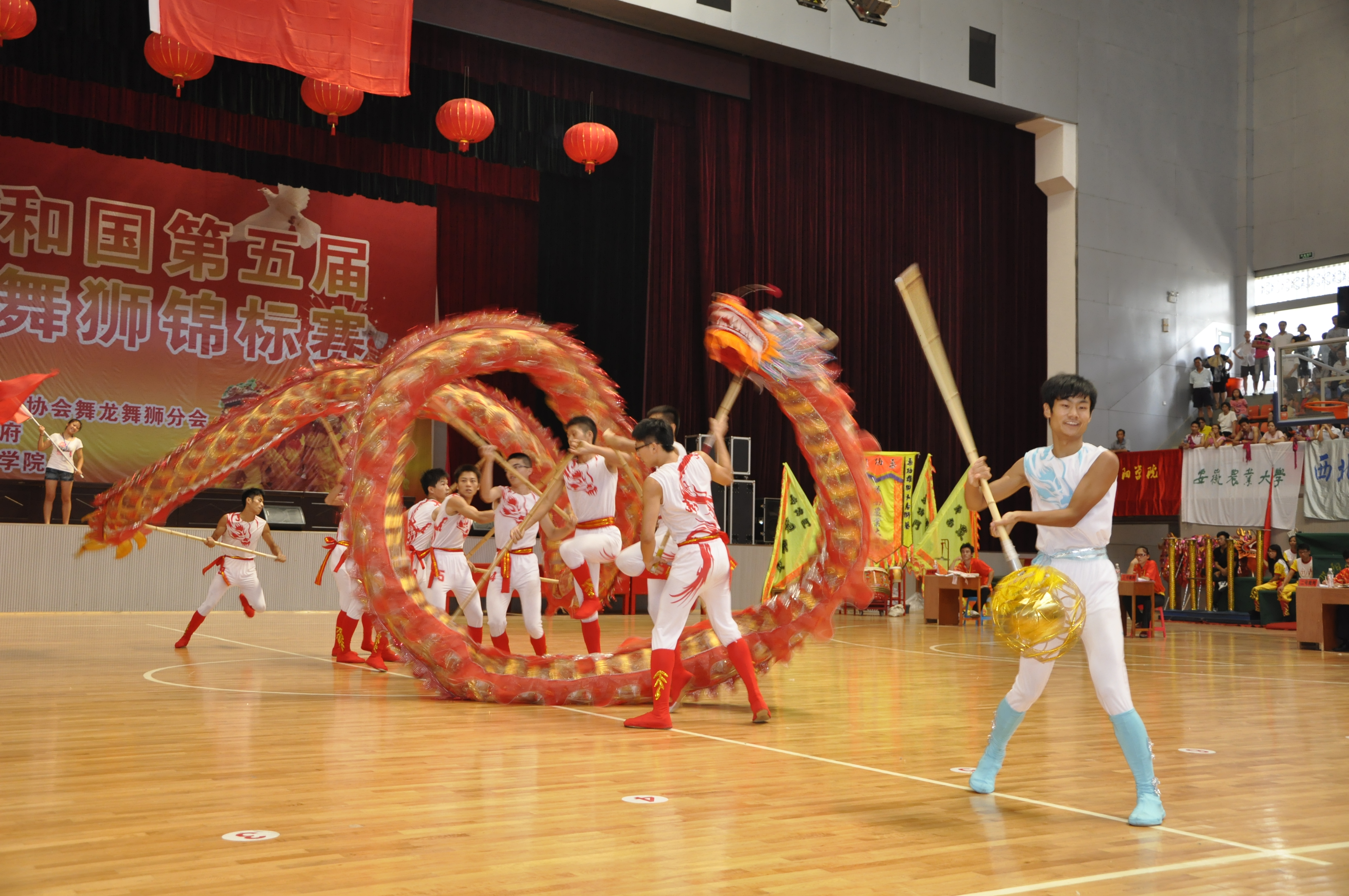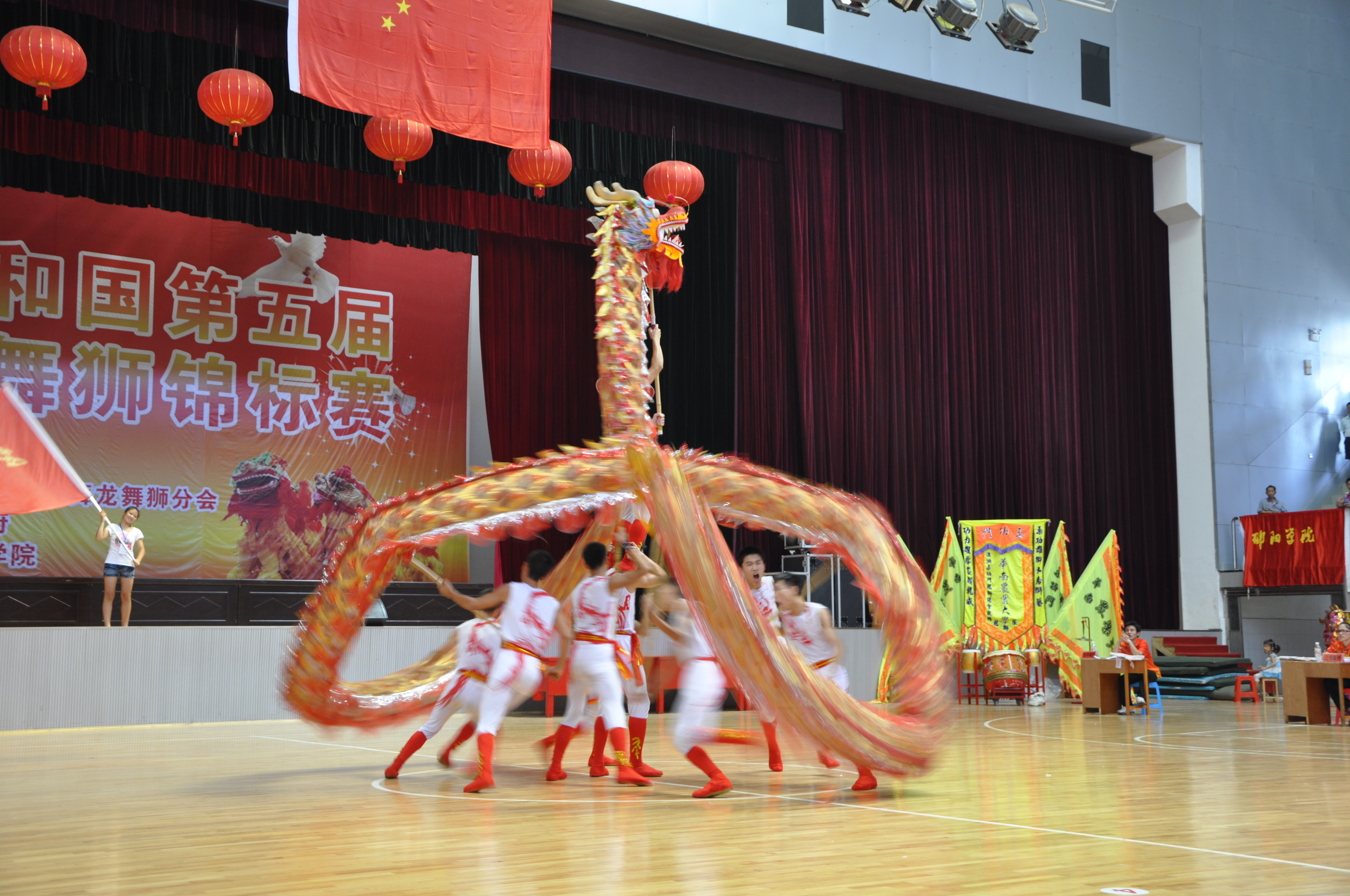 名运动员参加了在湖南人文科技学院举行的全国第五届大学生舞龙舞狮锦标赛,我校舞龙队队员发扬顽强拼搏和团结协作的精神进行了了八个场次的比赛最终一举获得男子甲组团体总分第五名、女子甲组团体第七名的优异成绩,并有申飞、杜方红两名同学荣获体育道德风尚奖运动员。具体单项成绩如下: