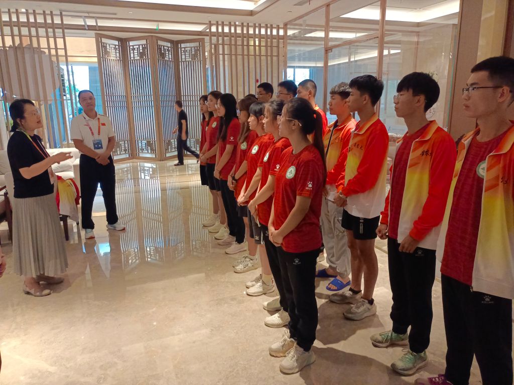 开幕式前,李红出席了安徽省第十五届运动会高校部田径比赛团长领队会议,会后在体育部副主任尹维增陪同下赶往我校田径队驻地,看望我校参赛师生。看望过程中,尹维增汇报了我校队员参赛项目、赛前准备、运动员的竞技状态、场地适应以及在驻地生活等相关情况。李红仔细听取了汇报,并同现场师生进行了深入交流,对教练员、运动员在疫情防控常态化的形势下克服困难、战胜高温、牺牲假期,全力以赴备战省运会的拼搏精神给予充分肯定。