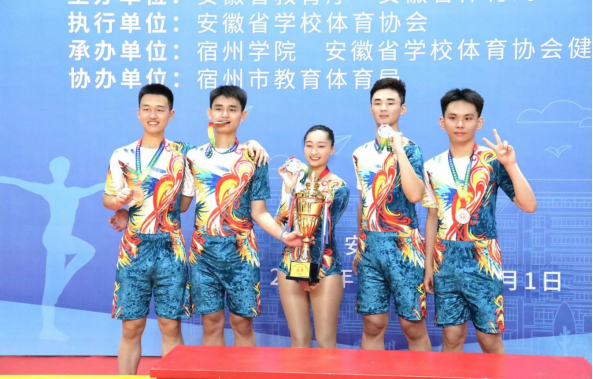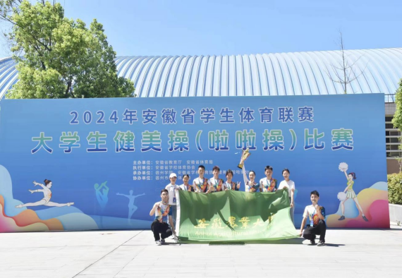 本网讯 7月26日至29日,由安徽省教育厅、安徽省体育局主办的2024年安徽省学生体育联赛大学生健美操比赛在宿州学院举行。我校健美操队参加了甲组全部五个项目的角逐。期间我校队员们团结协作、不畏艰难,最终王振华、王志博、覃雅伦、梁露茜、卢恩琦荣获健美操五人项目亚军;任潇潇、刘星雨荣获混合双人项目季军;任潇潇荣获男子单人项目第四名;潘文妍荣获女子单人项目第四名;王志博、梁露茜、刘星雨荣获三人项目第四名。