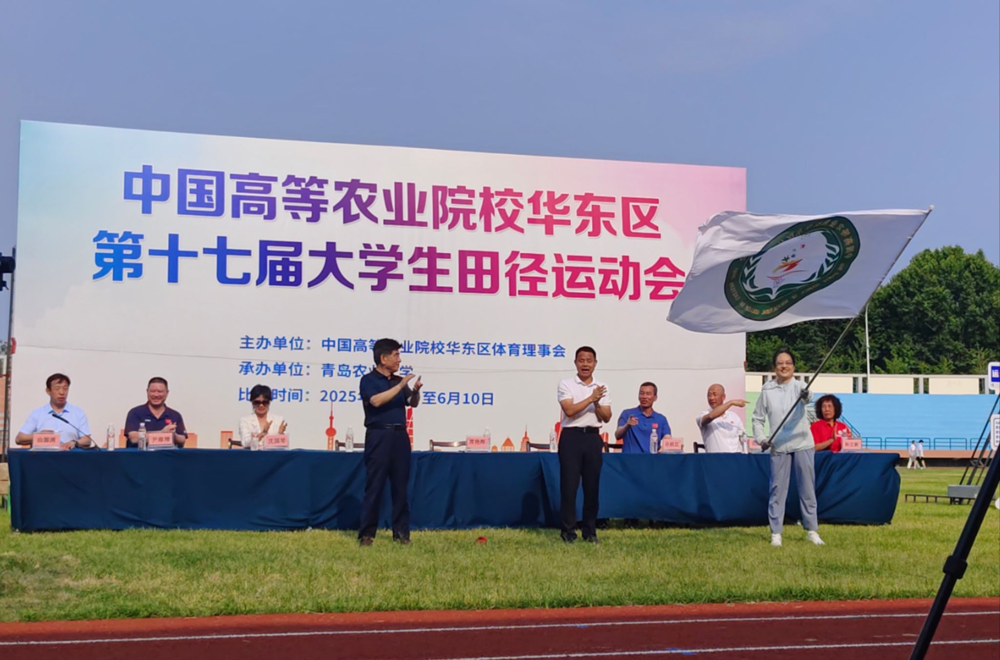 根据中国高等农业院校华东区体育理事会安排,我校将承办下一届田径运动会,闭幕式上举行了会旗交接仪式,李红代表学校从中国高等农业院校华东区体育理事会理事长席艳辉手中接过会旗,并许下承诺,将努力为大家奉献一届“安全、高效、精彩、圆满”的体育盛会!(文图:洪晓波 初审:李诚刚 复审:尹维增 终审:黄庆华)