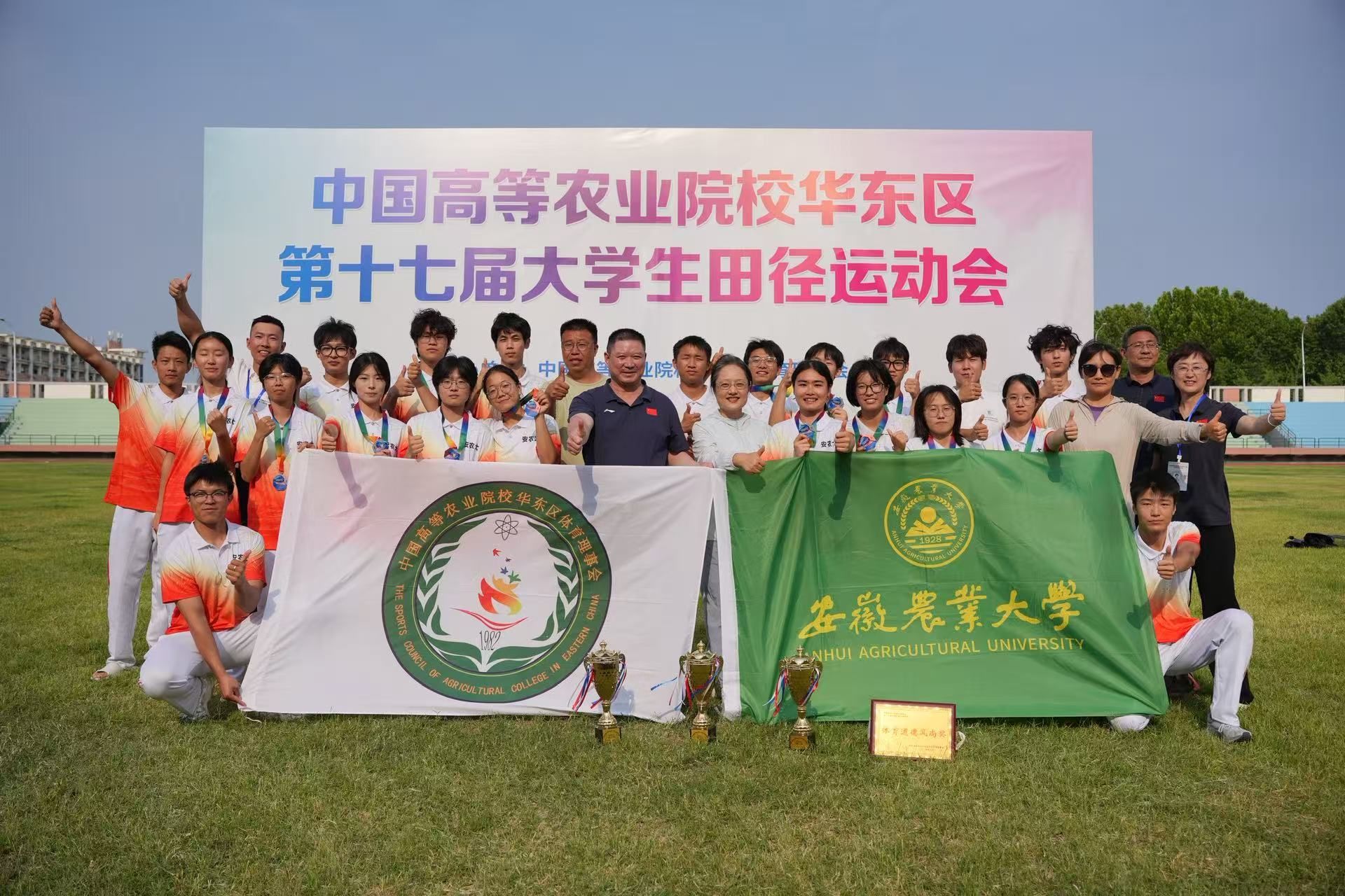 我校运动健儿在本次比赛中共斩获5金5银9铜,最终获得男女团体总分第一名的优异成绩,创造了我校在华东区大学生田径运动会上的历史最佳战绩。在本次比赛中,农学院王卓娓娓同学以5.50米的优异成绩打破安徽省大学生田径运动会女子甲组跳远纪录及校运会纪录,并获得冠军。