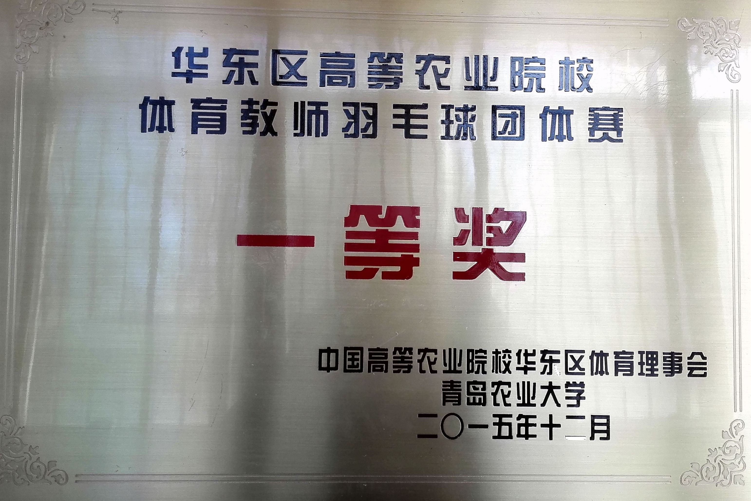 年中国高等农业院校华东区体育理事会年会教工羽毛球比赛一等奖