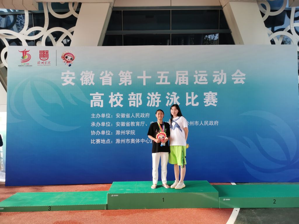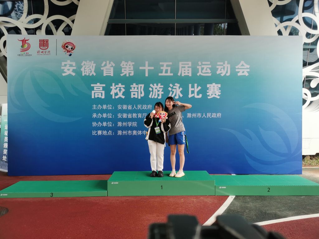 本网讯 7月19日—21日,安徽省第十五届运动会高校部游泳比赛在滁州奥体中心游泳馆举行,经过3天的激烈角逐,我校游泳队5名运动员共斩获两金两银,三个第四名,一个第五名、一个第七名等优异成绩,并获得了体育道德风尚奖,实现了竞赛成绩与精神文明双丰收。