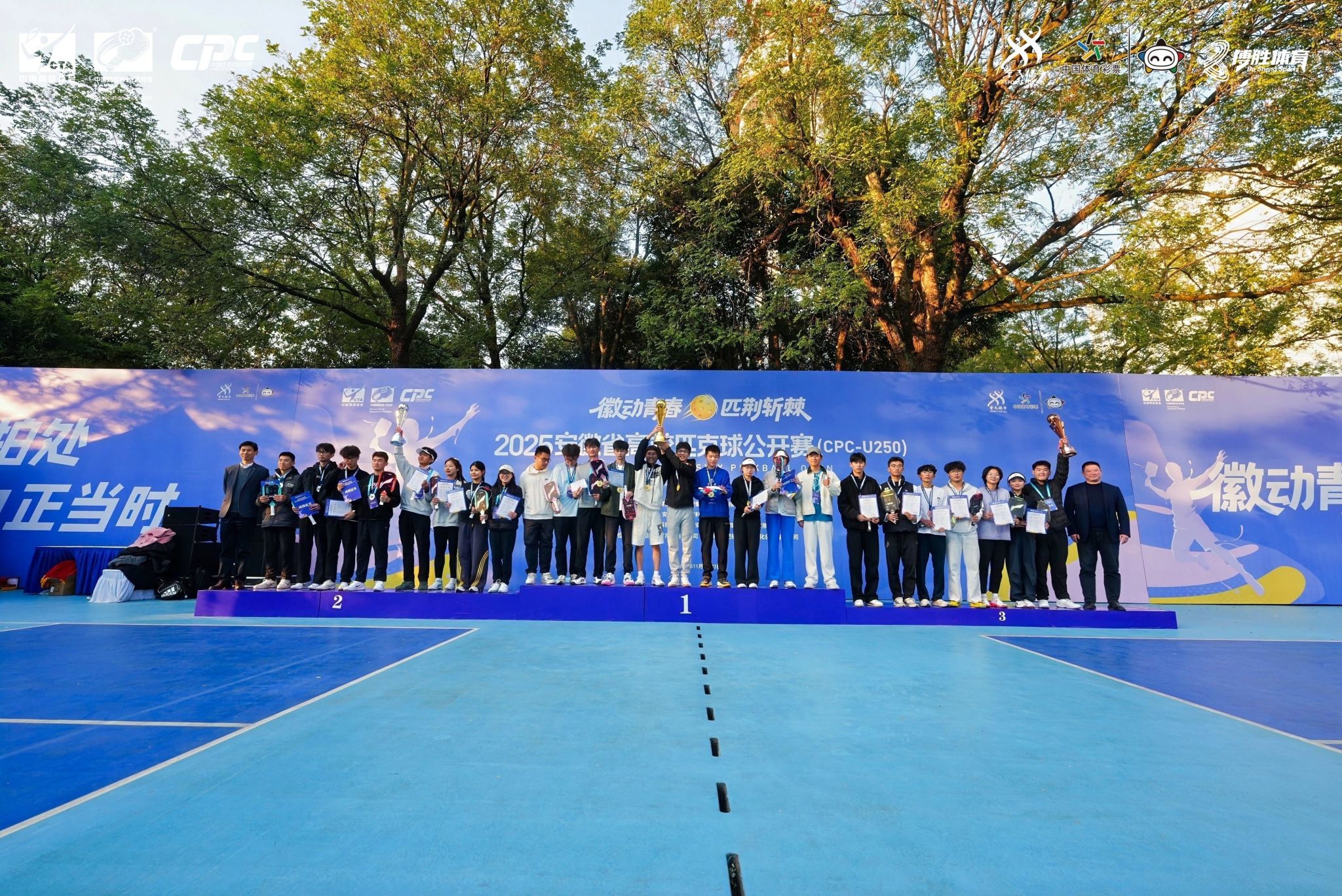 本网讯 11月23日下午,由安徽省社会体育指导中心、安徽省社会体育指导员协会主办,我校承办的2025年安徽省高校匹克球公开赛(CPC-U250)在我校匹克球场圆满收官。本次赛事吸引了来自全省32所高校的600余名教练员、运动员和工作人员参与,共同见证了这场集竞技、交流与青春活力于一体的体育盛会。